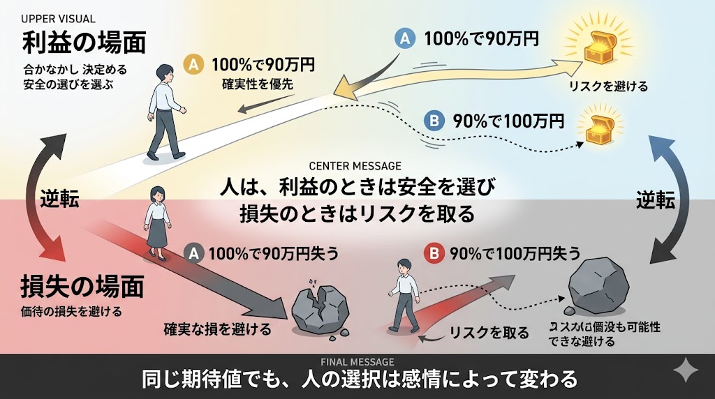利益を得る場面ではリスクを避ける傾向があります。