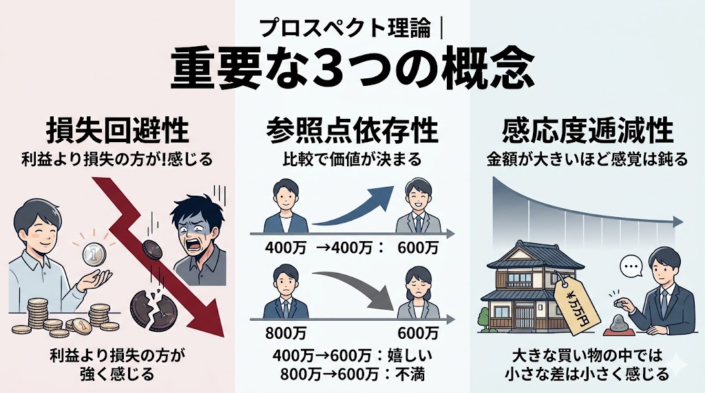 プロスペクト理論を次の3つで捉えます。
